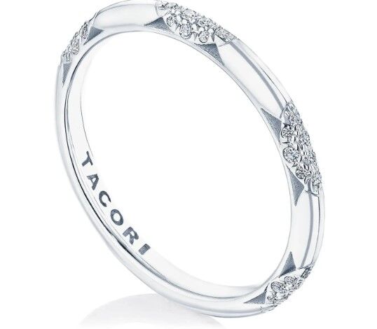 TACORI LADY’S WHITE 18 KARAT WEDDING BAND SIZE 6.5 WITH 0.13TW ROUND DIAMONDS VS CLARITY G COLOR SERIAL: 572276