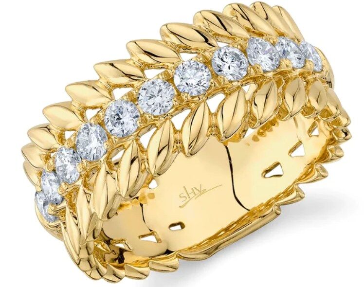 SHY CREATION 14K YELLOW GOLD DIAMOND LAUREL WREATH RING, 0.64CTW