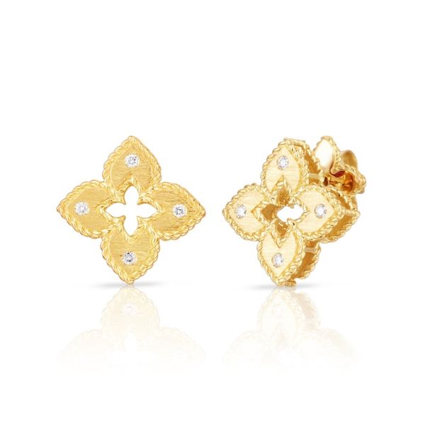 ROBERTO COIN 18K YELLOW GOLD PETITE VENETIAN PRINCESS EXTRA SMALL SATIN & DIAMOND ACCENT FLOWER EARRINGS