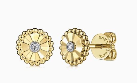 GABRIEL & CO14K WHITE AND YELLOW GOLD DIAMOND STUD EARRINGS *BUJUKAN COLLECTION* (GABY)