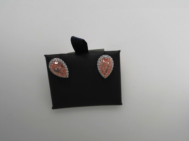 WHITE 14 KARAT HALO CVD DIAMONDS STUDS EARRINGS 3.60TW PEAR PINK DIAMONDS
