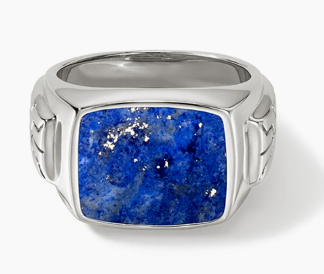 JOHN HARDY RMS986781LPZX10 SIGNET RING, STERLING SILVER, SIZE 10 A BOLD STATEMENT, CAREFULLY HAND CARVED FROM RECLAIMED STERLING SILVER AND SET WITH LAPIS LAZULI.