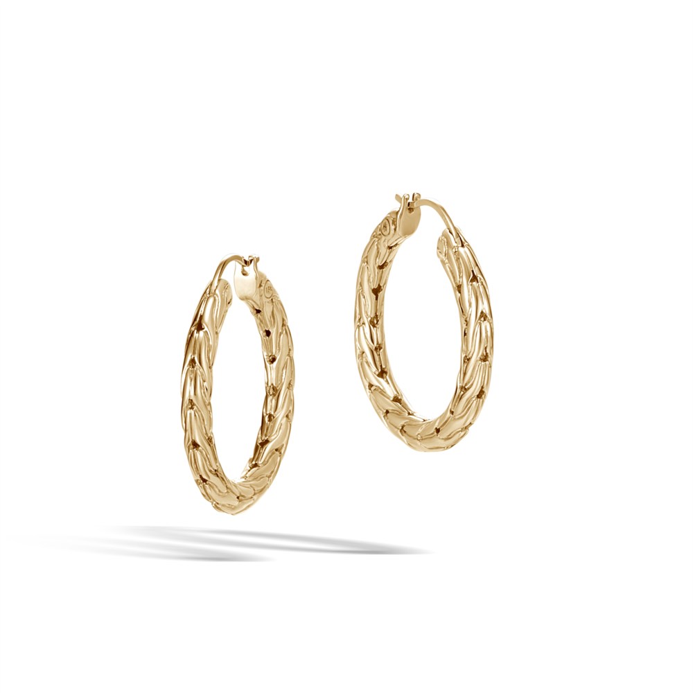 JOHN HARDY CHAIN COLLECTION CLASSIC CHAIN SMALL HOOP EARRING WITH IN 18 YELLOW GOLD.