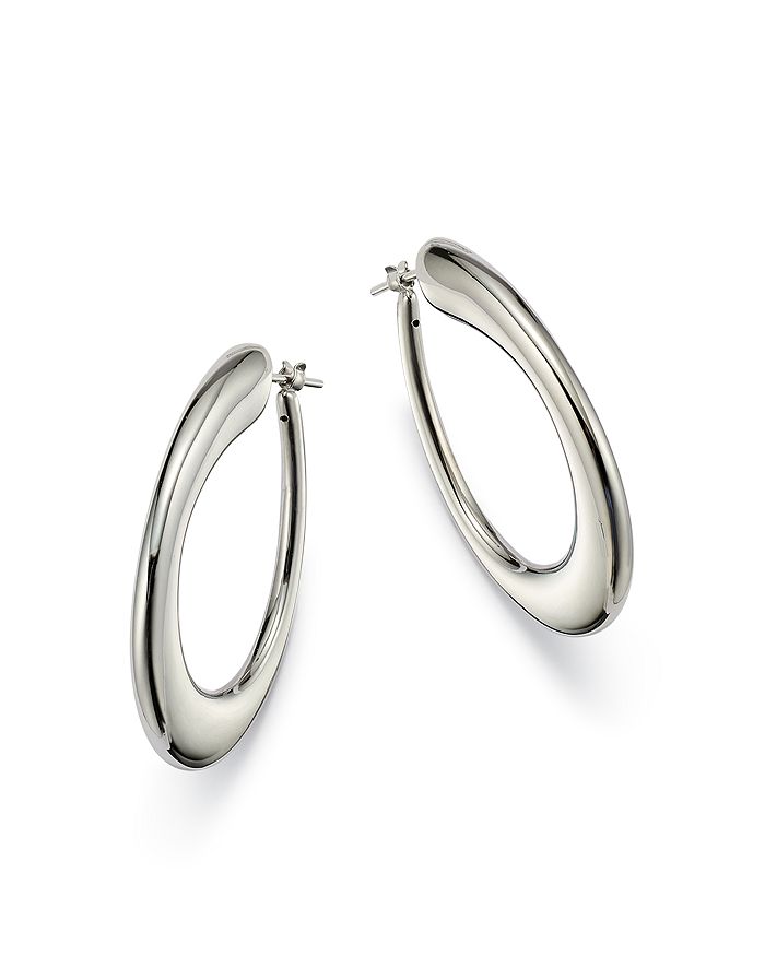 ROBERTO COIN 18K WHITE DESIGNER GOLD MEDIUM CONTOURED HOOP EARRINGS, APPROXIMATELY 40MM X 27MM