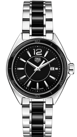 Tag Heuer 32 mm Formula 1 Quartz watch in stainless steel with a Black dial and Black ceramic bezel on a stainless steel and Black ceramic bracelet.