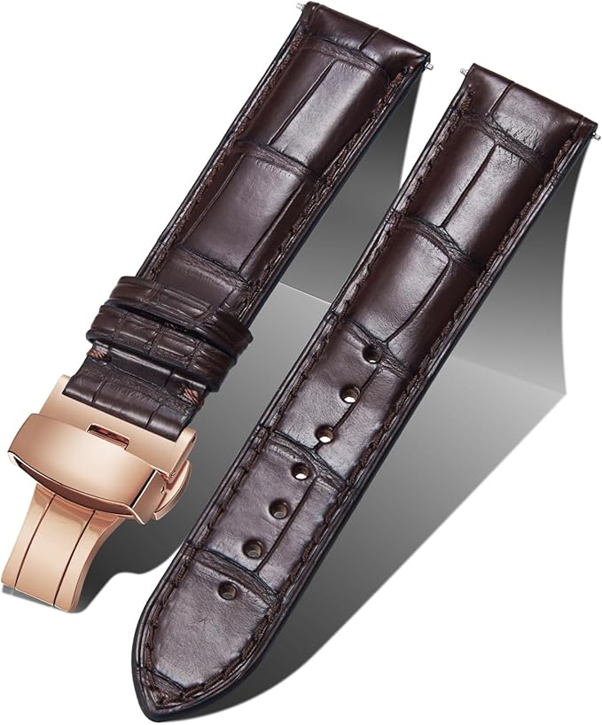 GENUINE ALLIGATOR LEATHER WATCH STRAP WITH CROCODILE GRAIN QUICK RELEASE DEPLOYMANT CLASP