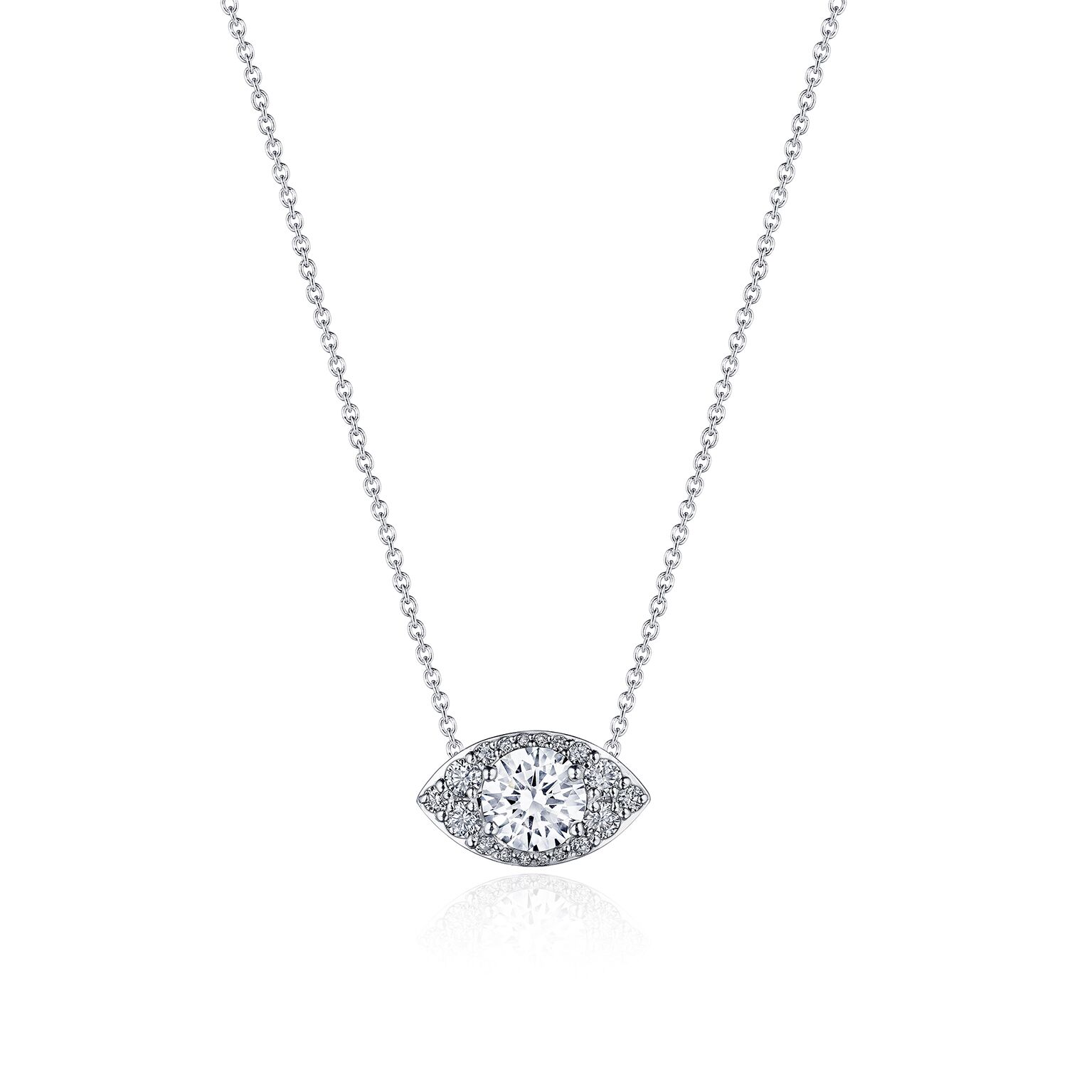 This stunning marquise bloom diamond necklace is sure to make a statement. A flourish of diamond spotlight enhancers illuminates the center with clarifying depth and dimension.