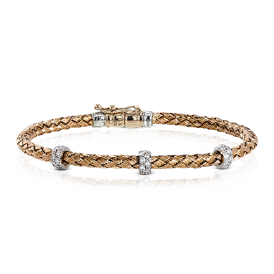 This wonderful bracelet is woven from pure 18k rose gold, with a rich warmth which sets off the .33 ctw of white diamonds in its midst. Perfect for stacking.