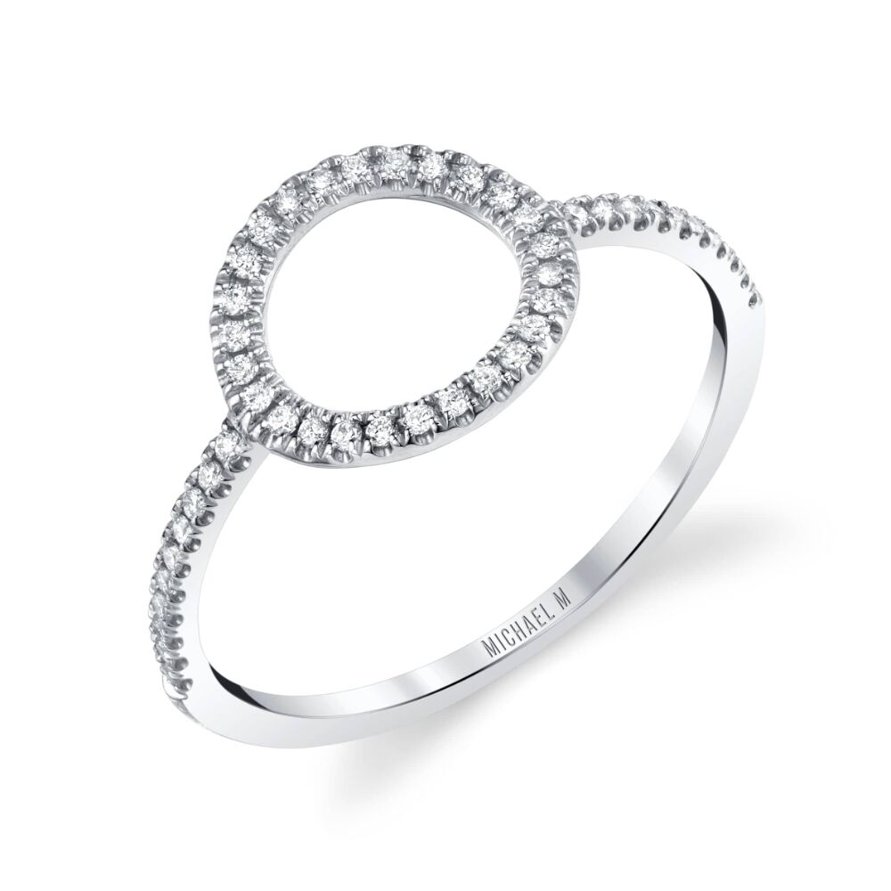The Diamond Open Circle Ring is equally radiant and refined. Featuring a partial diamond band and diamond open circle handset with 0.16 carat round diamonds. Available in 14K White Gold, 14K Yellow Gold, and 14K Rose Gold.