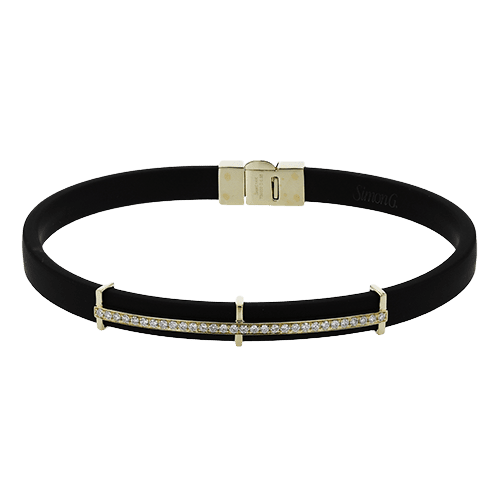 This bold bracelet features black rubber with 14k gold accents set with .35 ctw of white diamonds.