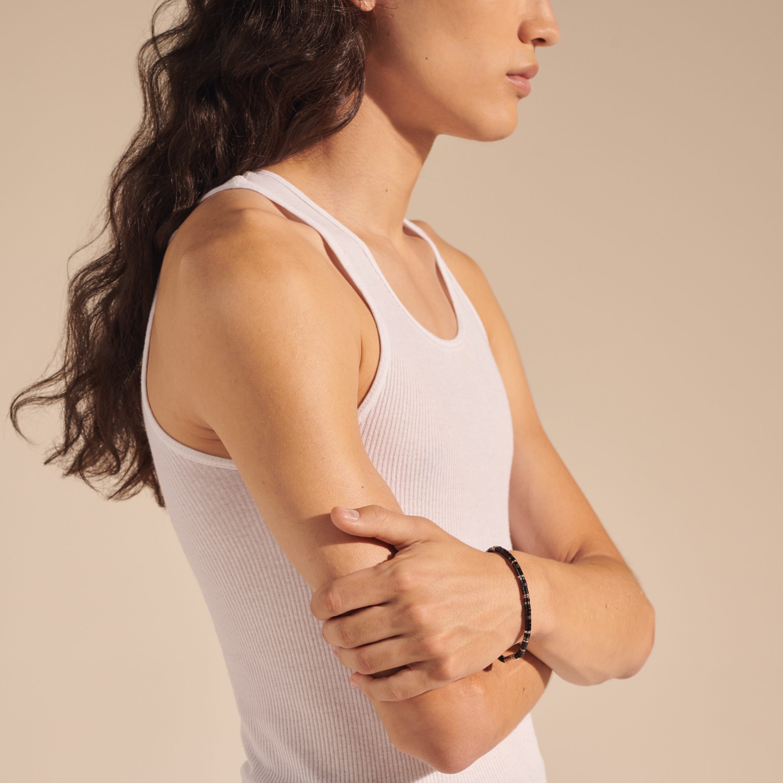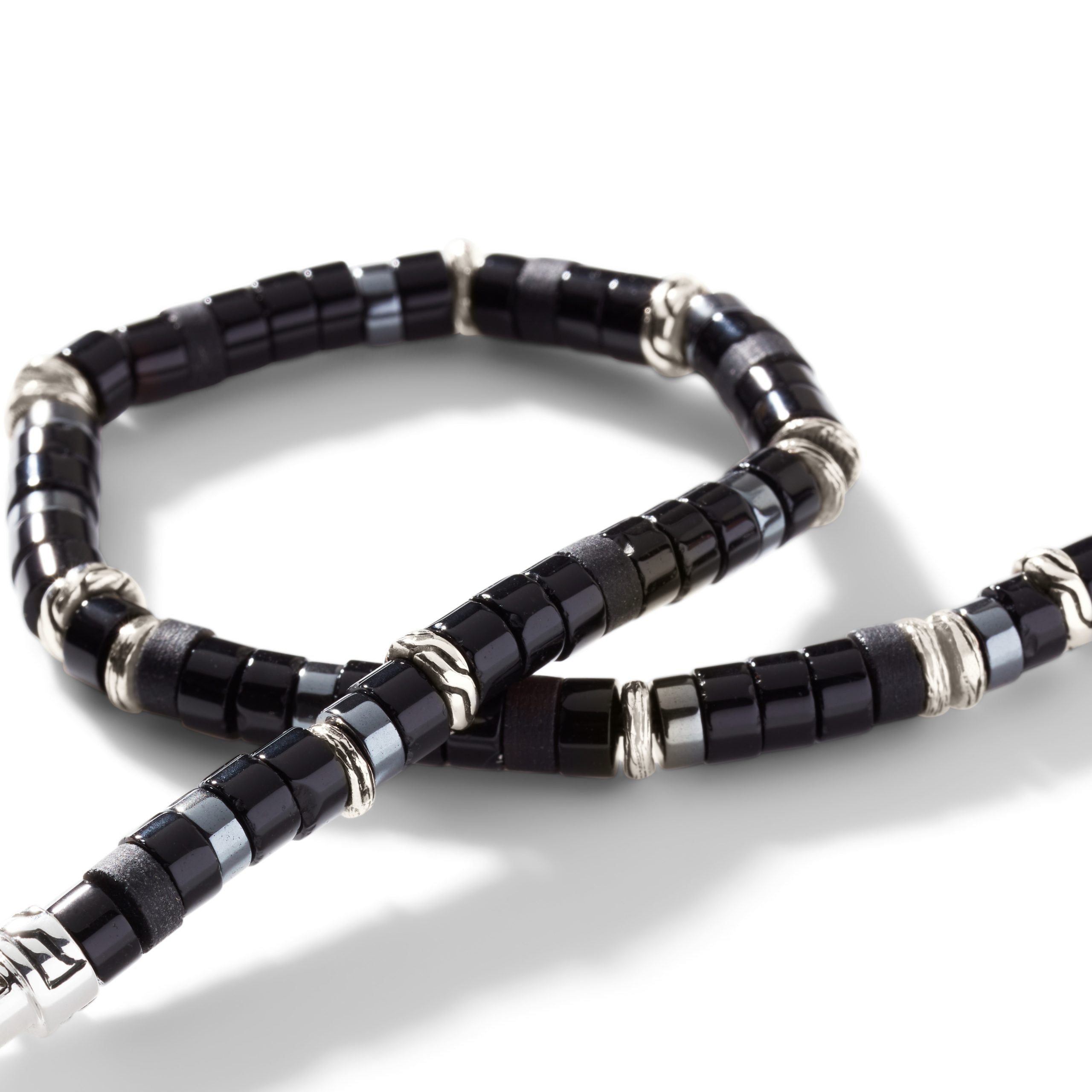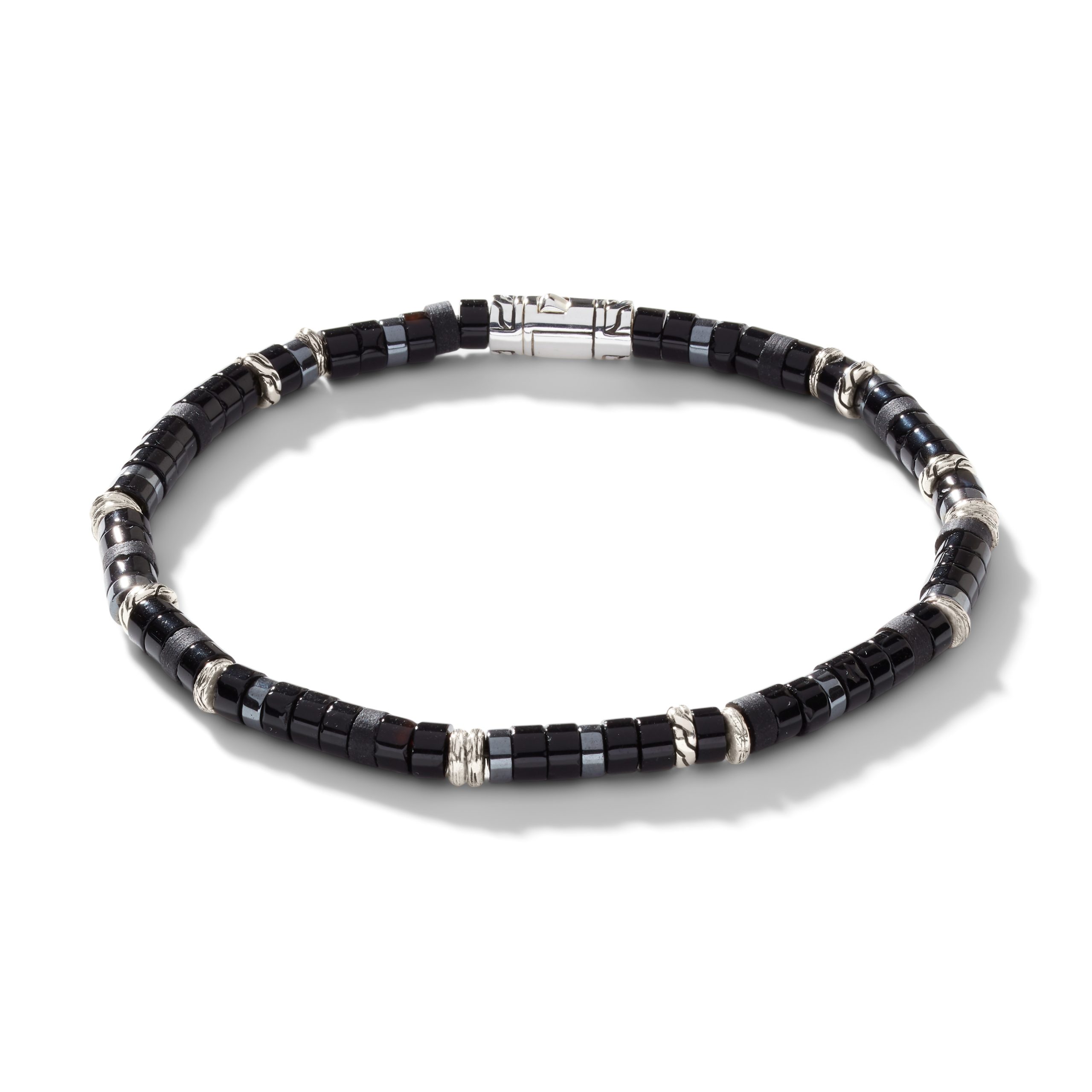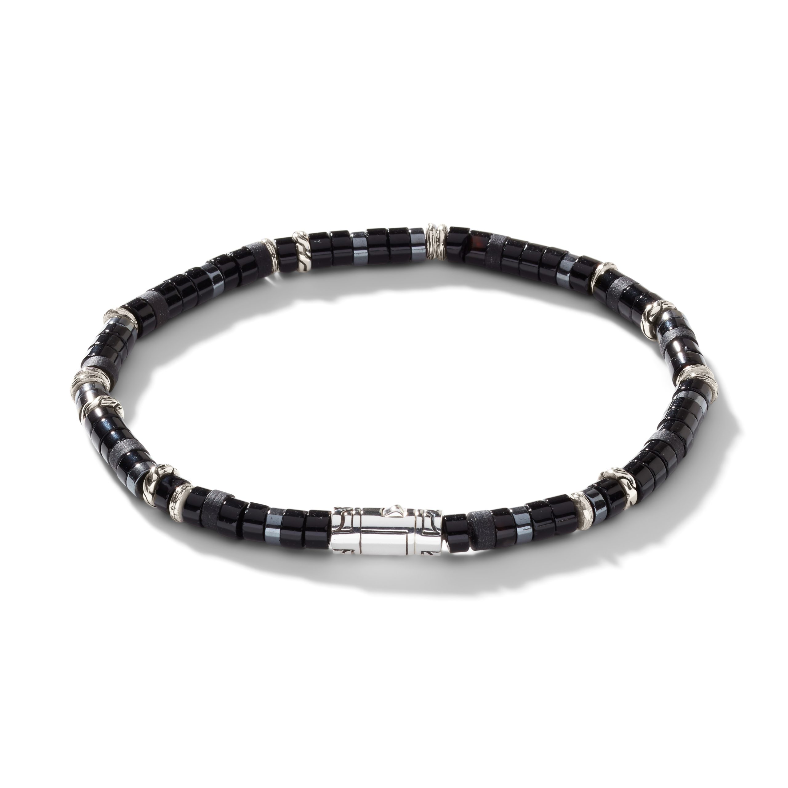 Heishi Silver Bracelet with Pusher Clasp with 4mm Treated Black Onyx and Hematite Beads, Size US