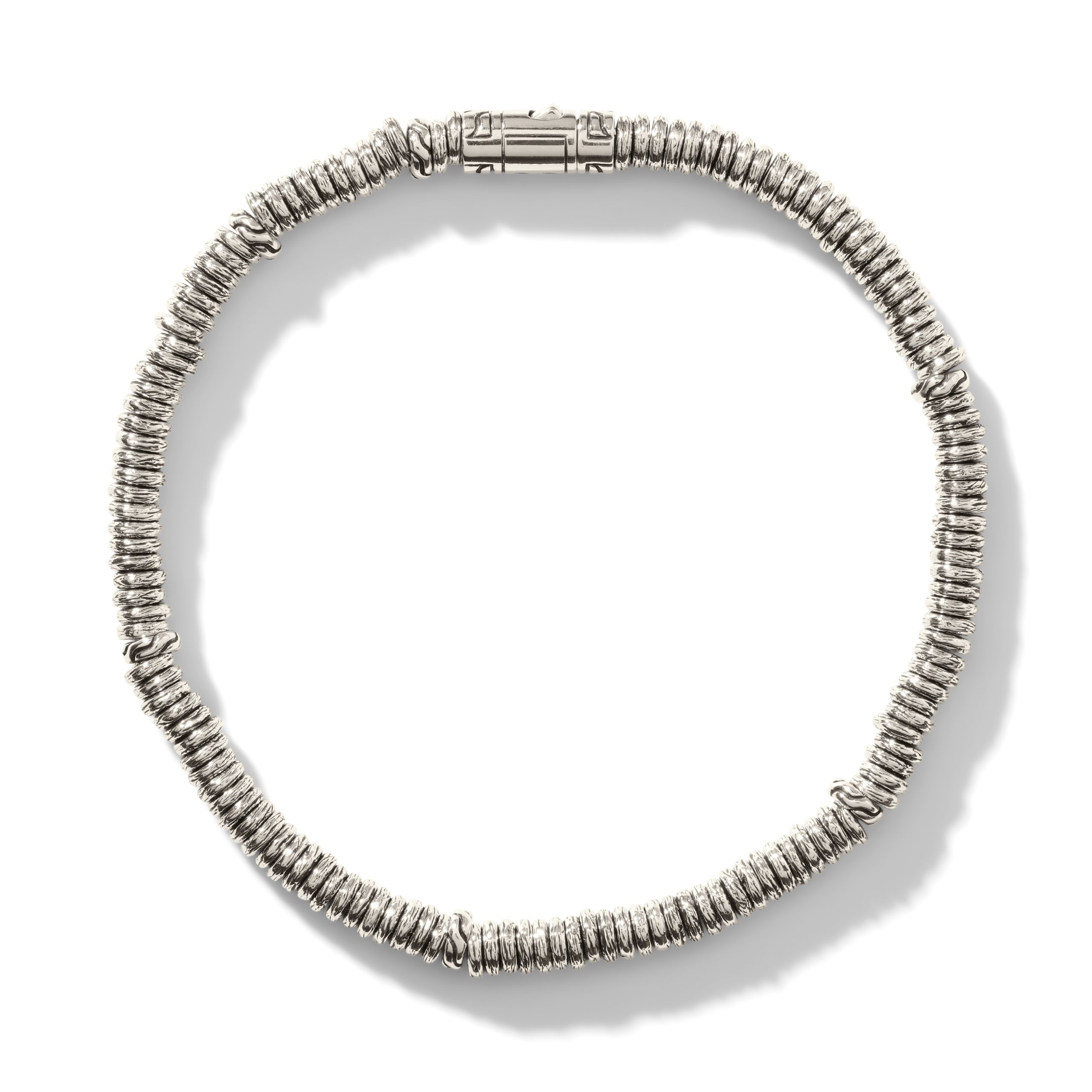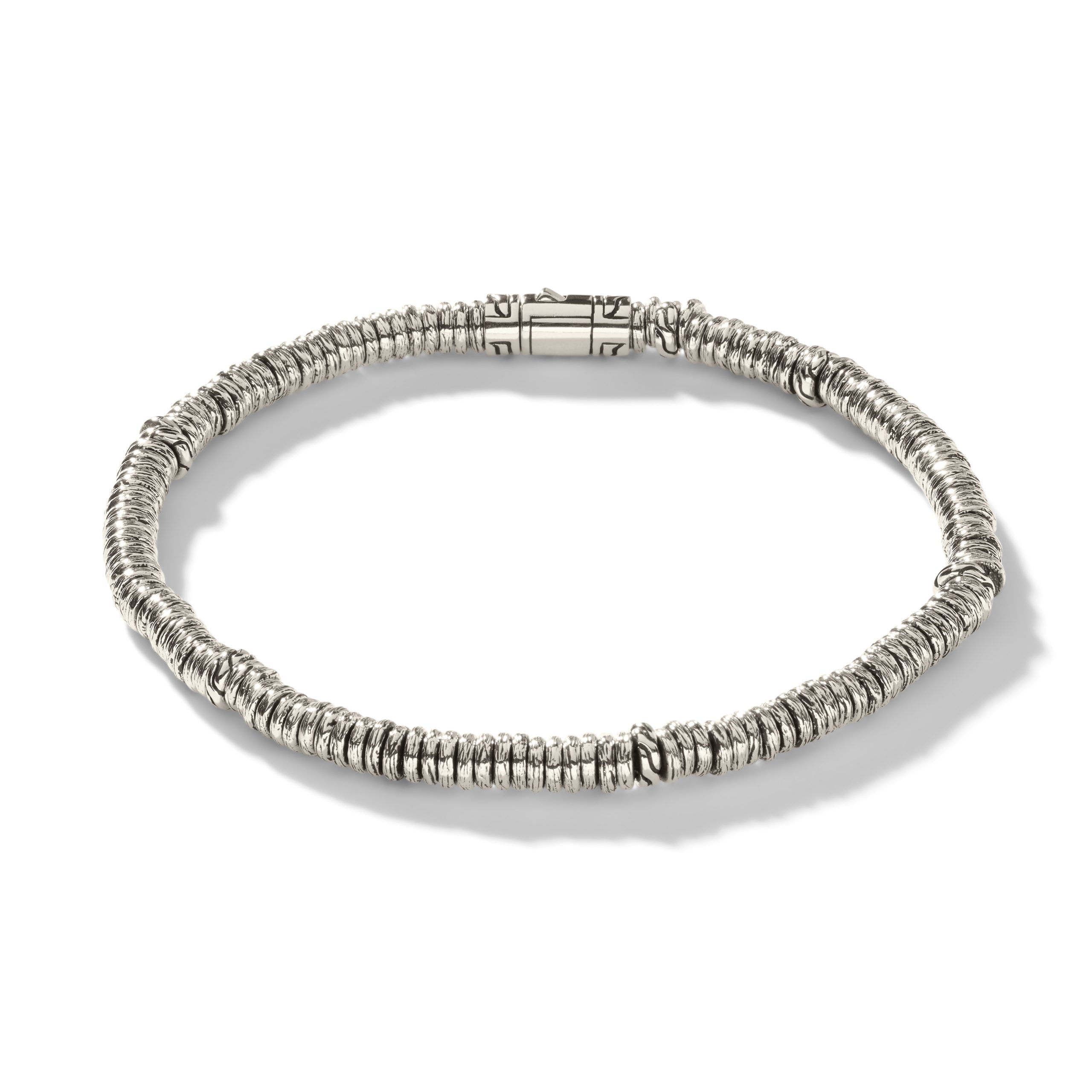 Heishi Silver Bracelet with Pusher Clasp with 4mm Silver Beads, Size US