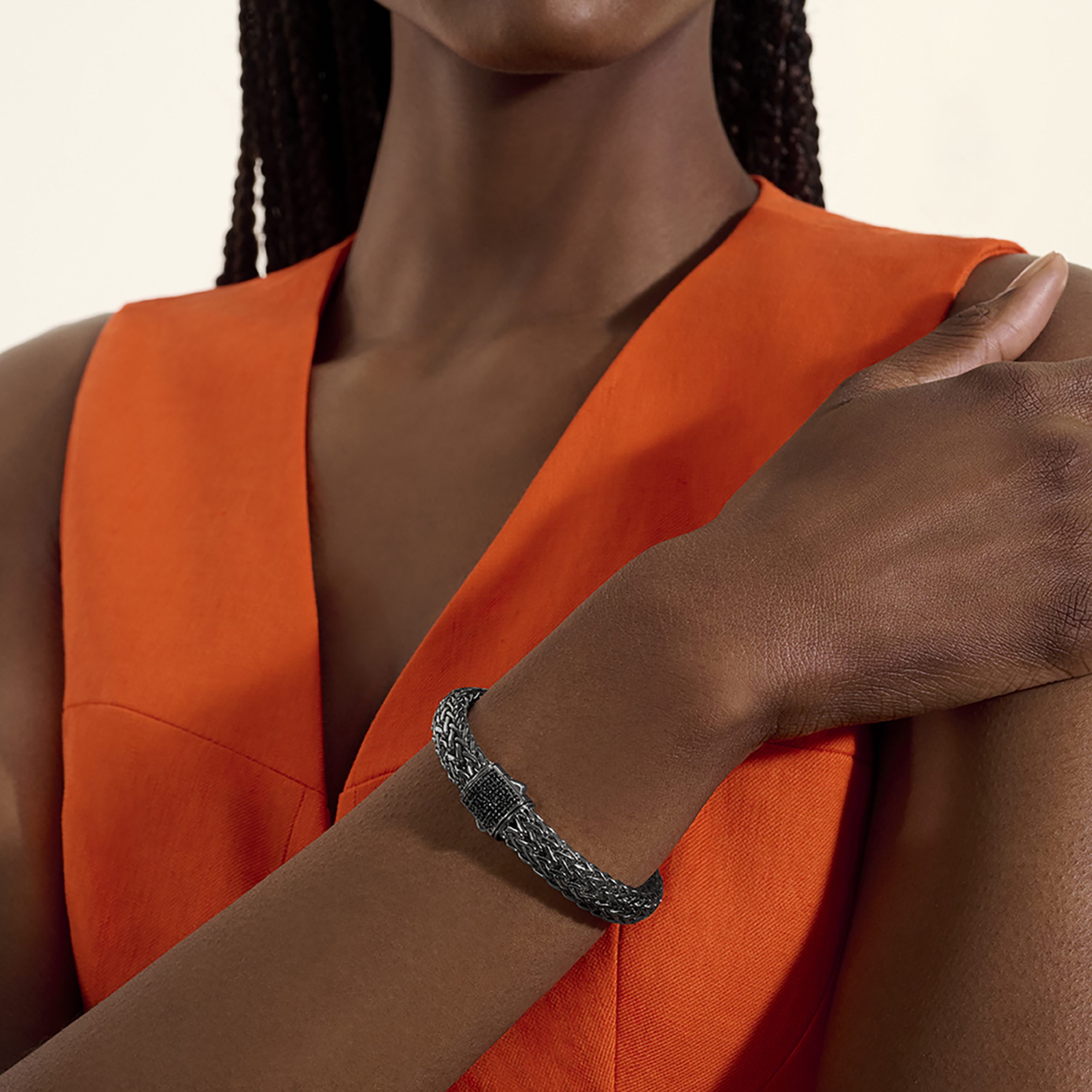 Icon Silver 10.5mm Large Bracelet with Treated Black Sapphire with Black Rhodium with Pusher Clasp, Size UM