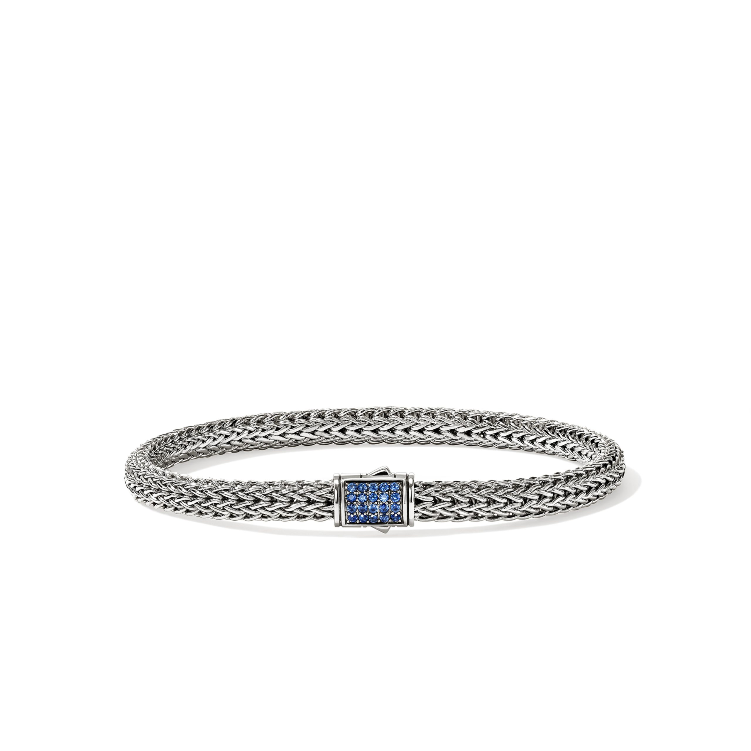 Icon Silver 5mm Extra Small Bracelet with Blue Sapphire with Pusher Clasp, Size US