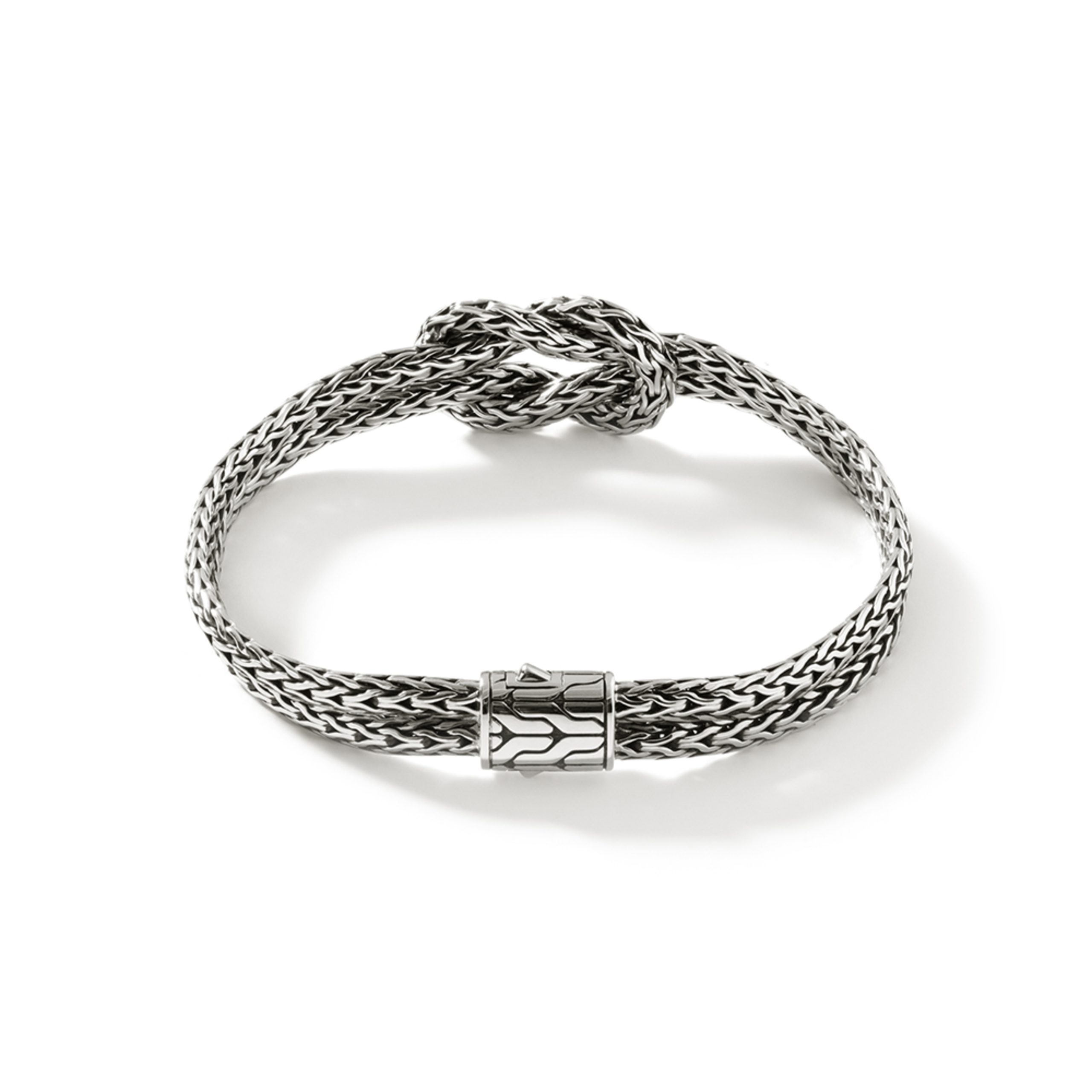 Love Knot Silver 7mm Slim Chain Double Row Bracelet with Pusher Clasp, Size US