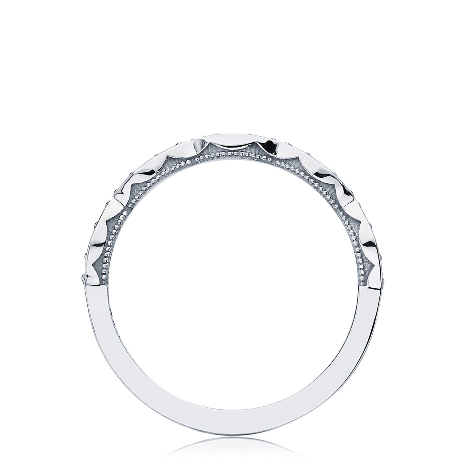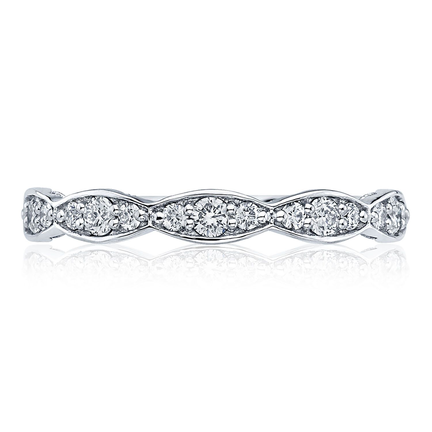Beautiful marquise shapes give this 2.5mm band a ribbon-like flourish. Beautiful on its own, or paired with a Tacori engagement ring.