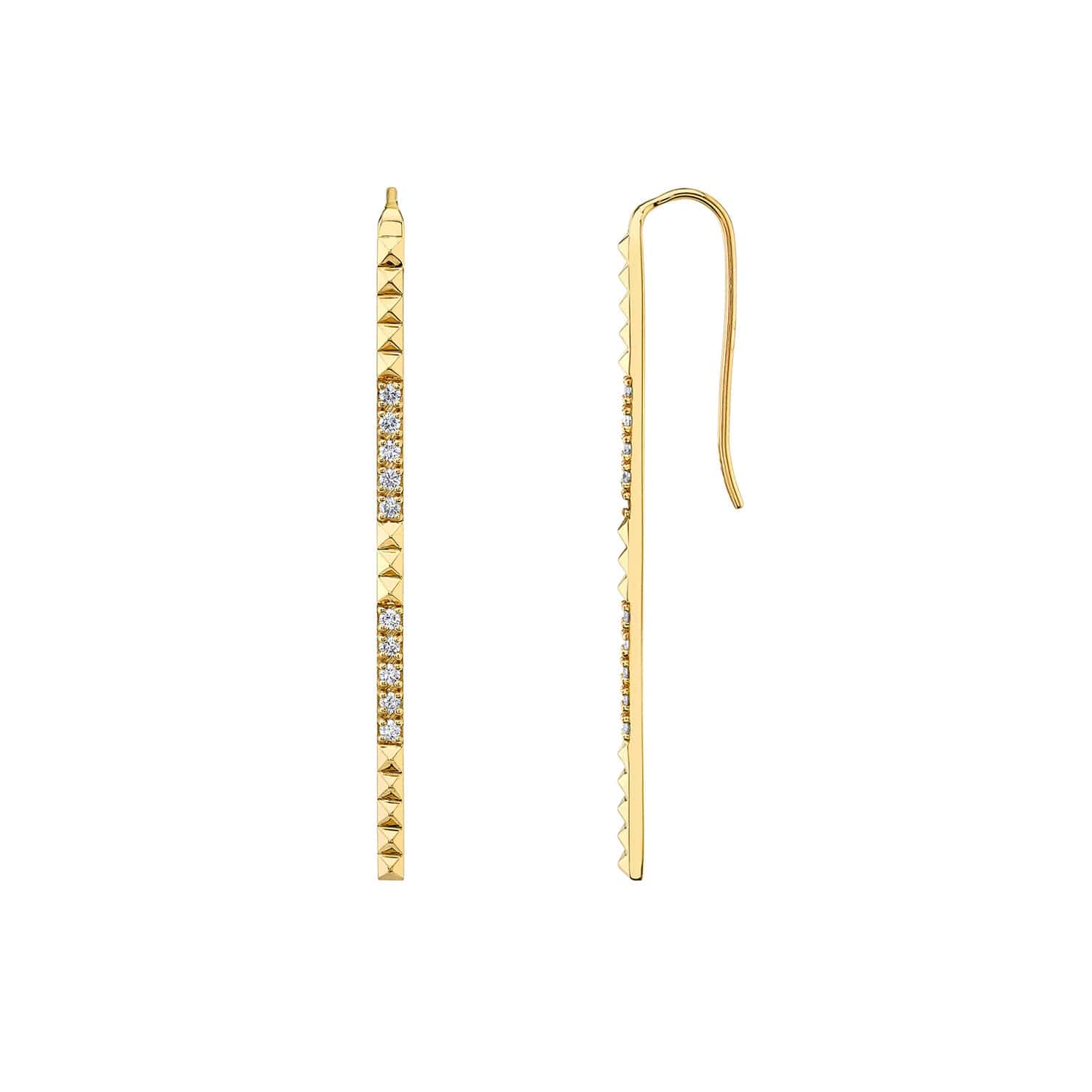 Modern and intricate, our Pavé Foundation Bar Earrings feature 20 sparkling prong set diamonds on a lightweight studded bar, adding a hint of intrigue to any outfit.
