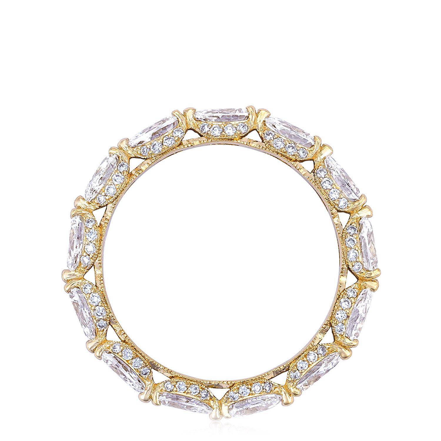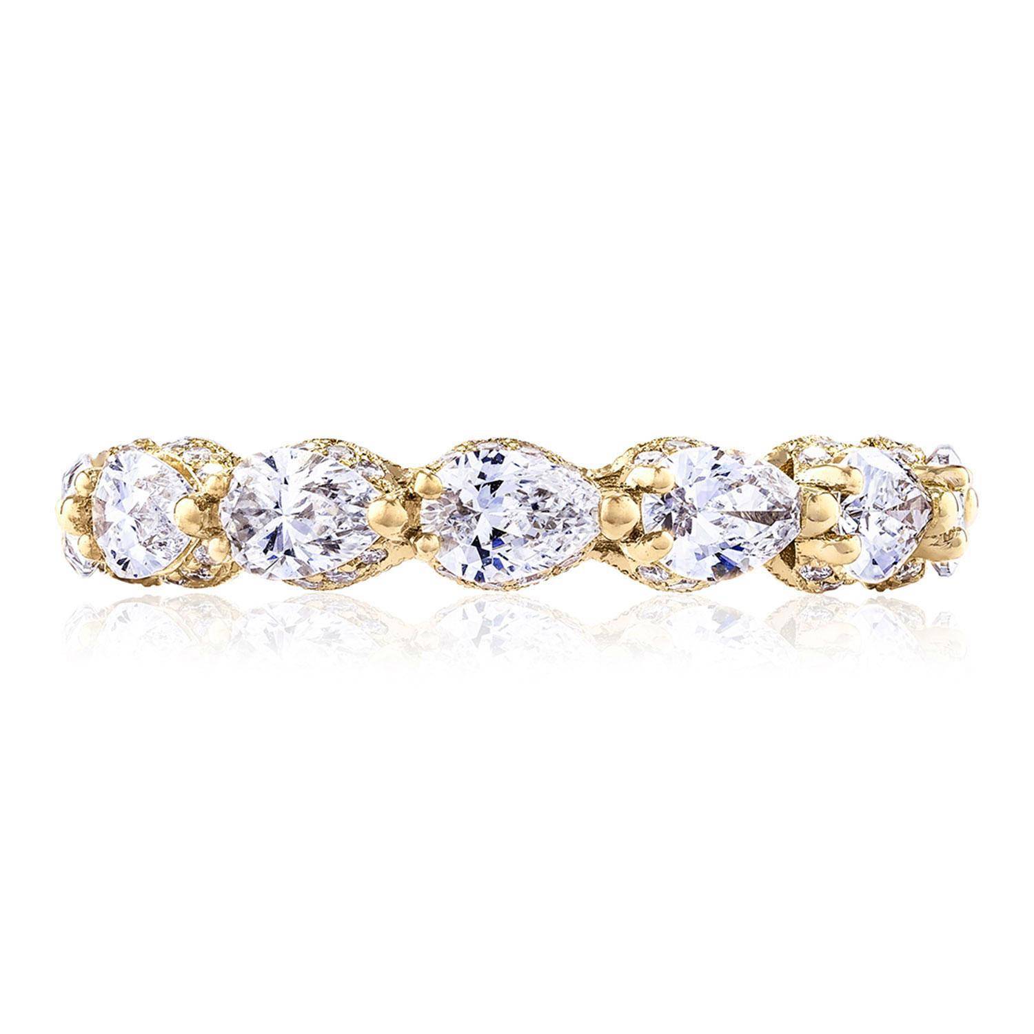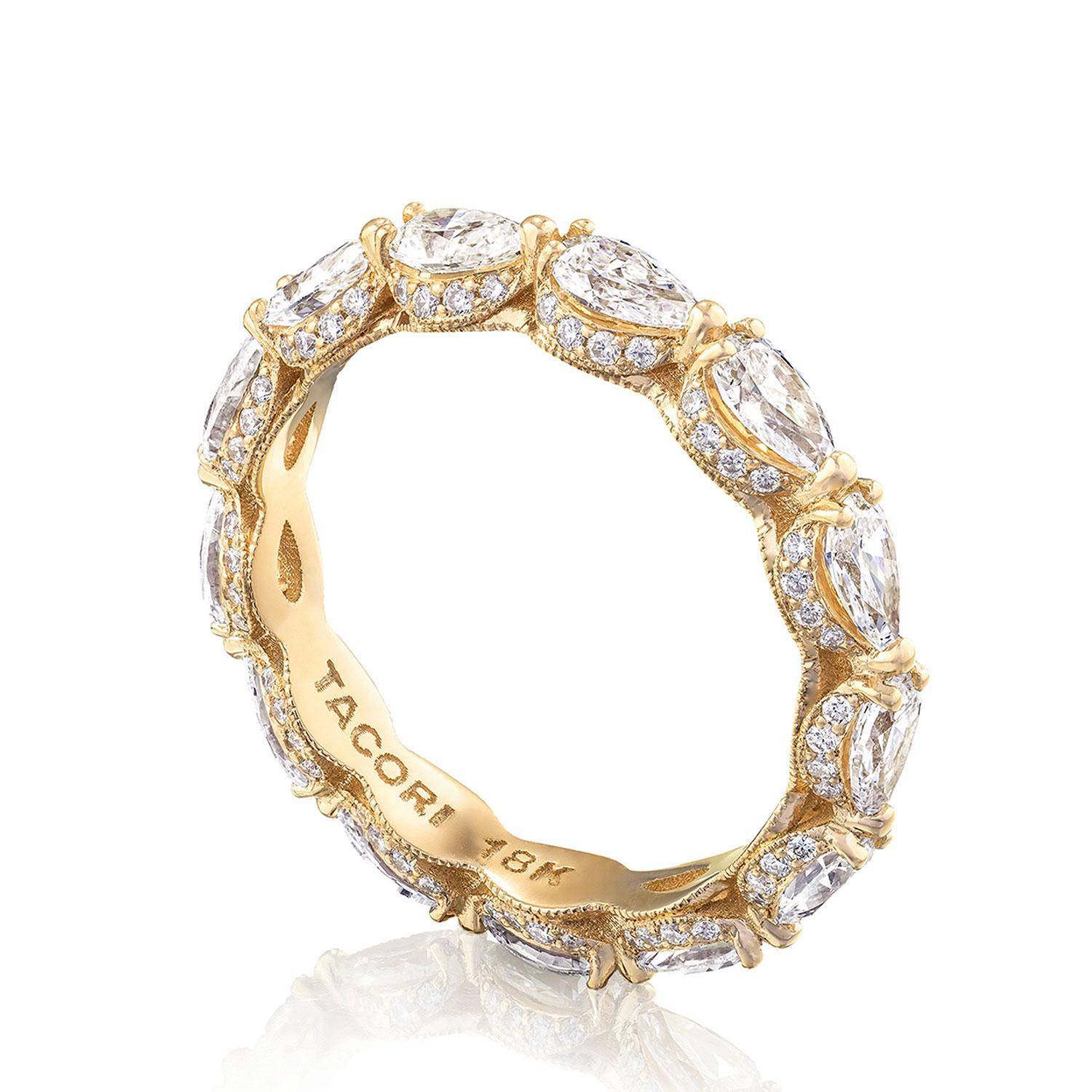 With over 2 carats of diamonds, this band is truly remarkable. Pear shaped diamonds dance along a band with pavé set diamonds along the inner face of the ring, allowing the brilliant diamonds to sparkle from every angle.