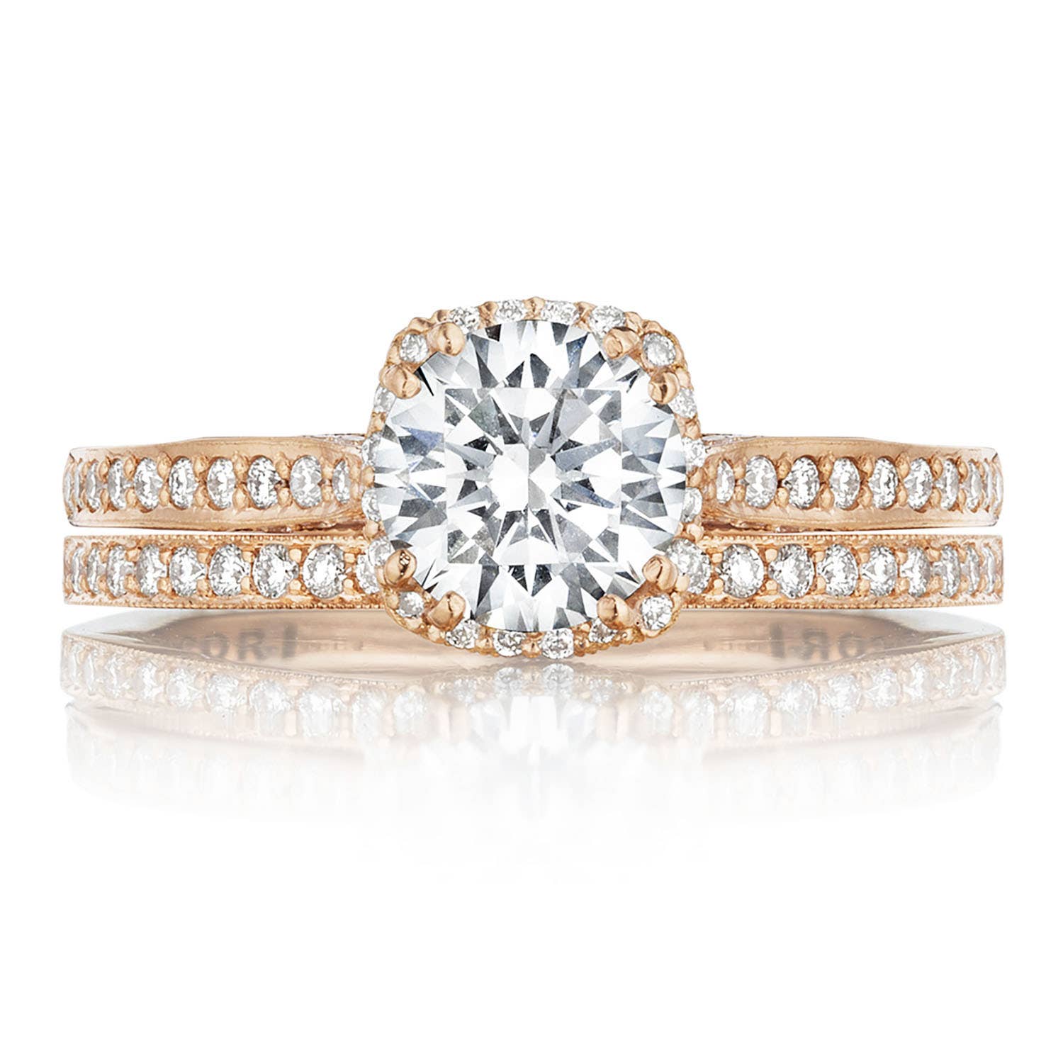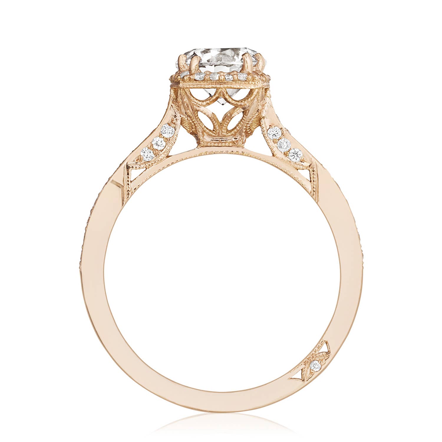 From our Dantela Collection, this unique setting creates a look that is a beautiful juxtaposition of modern, yet traditional; classic, yet unconventional. High polished platinum and a “blooming” crown of spotlight enhancers add depth and dimension to this stunning engagement ring.