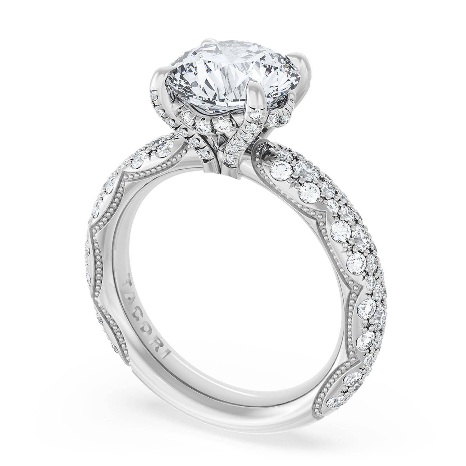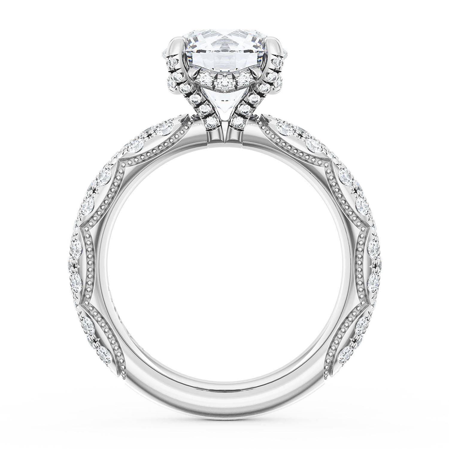 Diamond intensity on a bold 4.0mm band. The Founder’s Crescent Fabric wraps around the ceiling of the ring in diamond studded, sculpted detail.