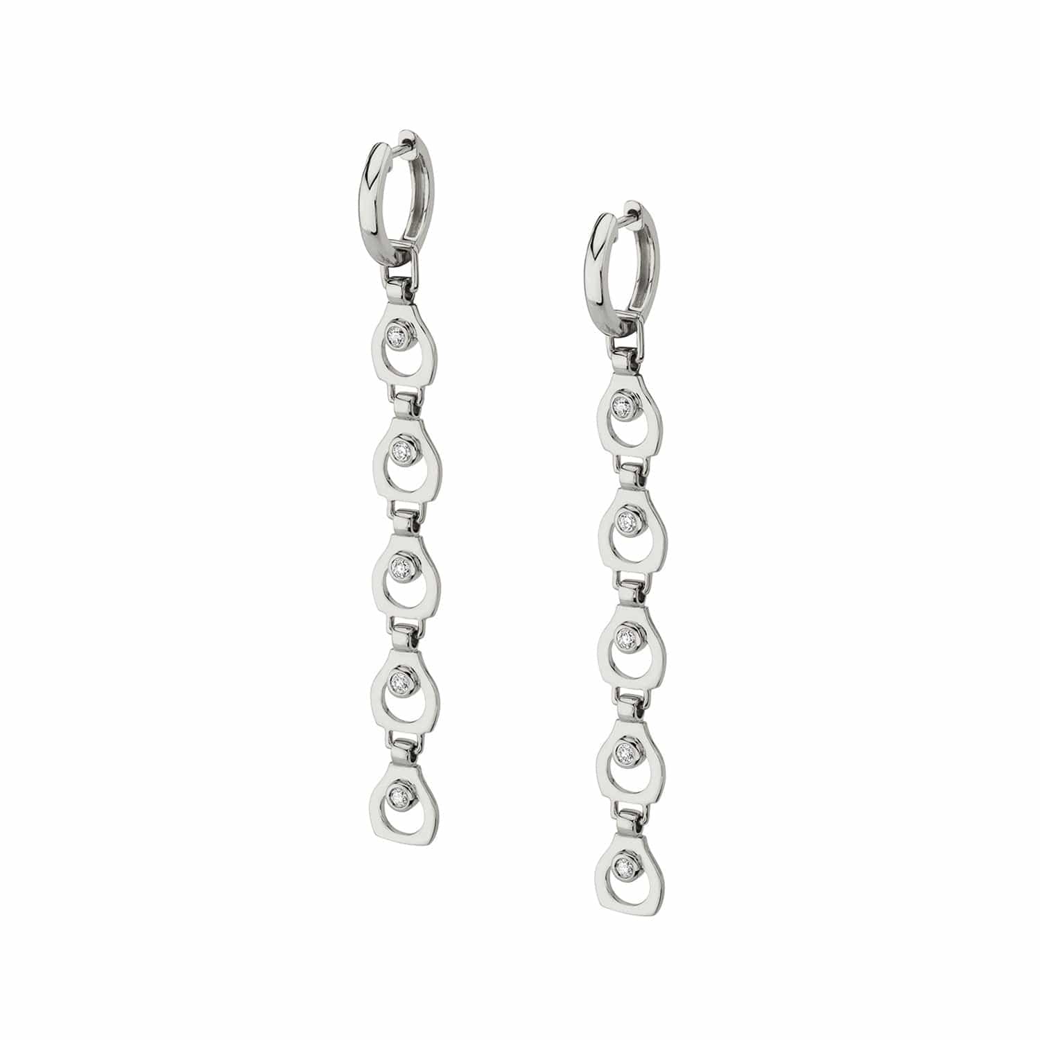 Subtly ornate and artfully delicate. Made from the profile of our iconic engagement ring shapes, the Signature Drop Earrings feature articulated connections in a pattern hanging from a perfectly round huggie. A mini work of art with precision and movement.