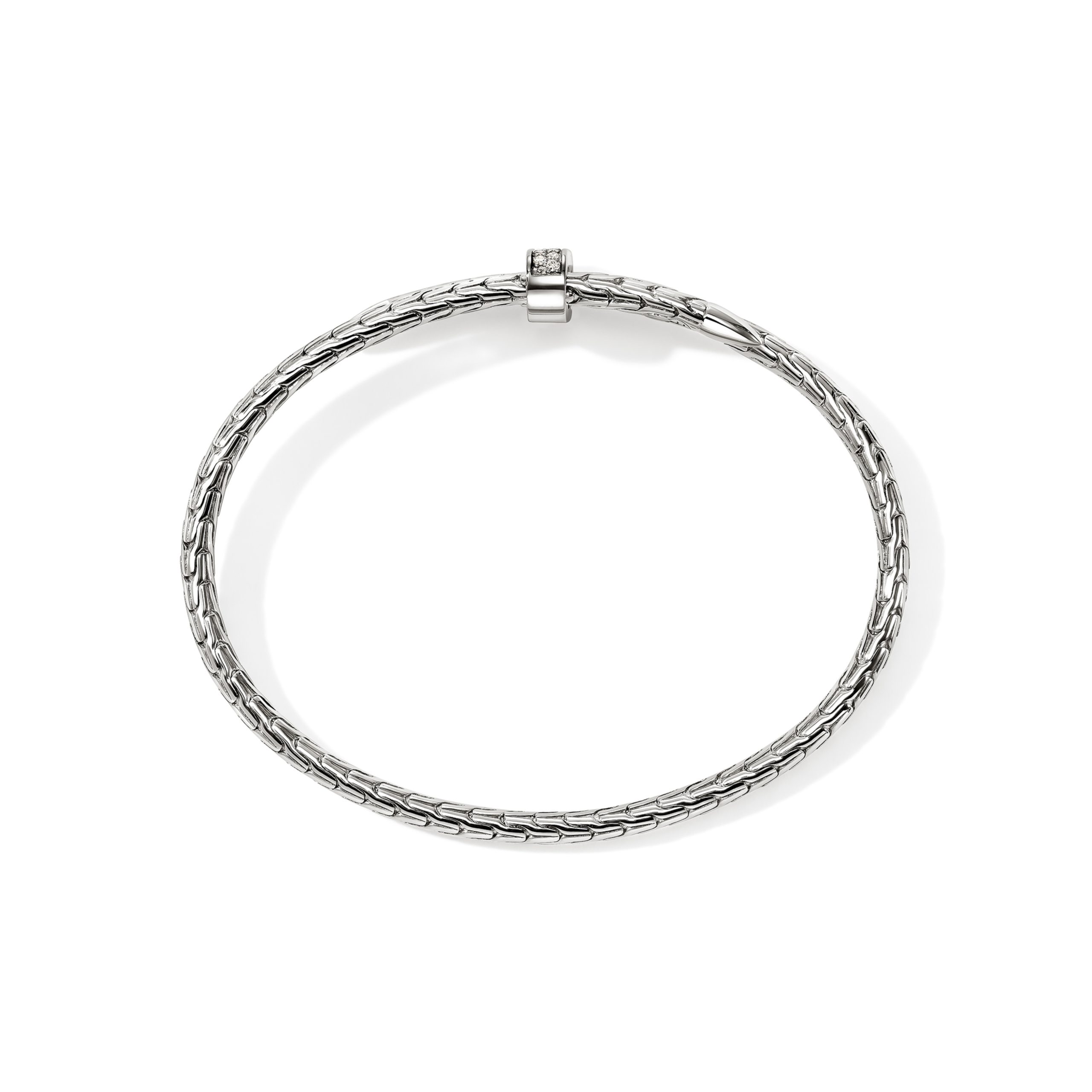 Spear Silver Diamond Pave (0.16ct) Bypass 4mm Flex Cuff, Size S