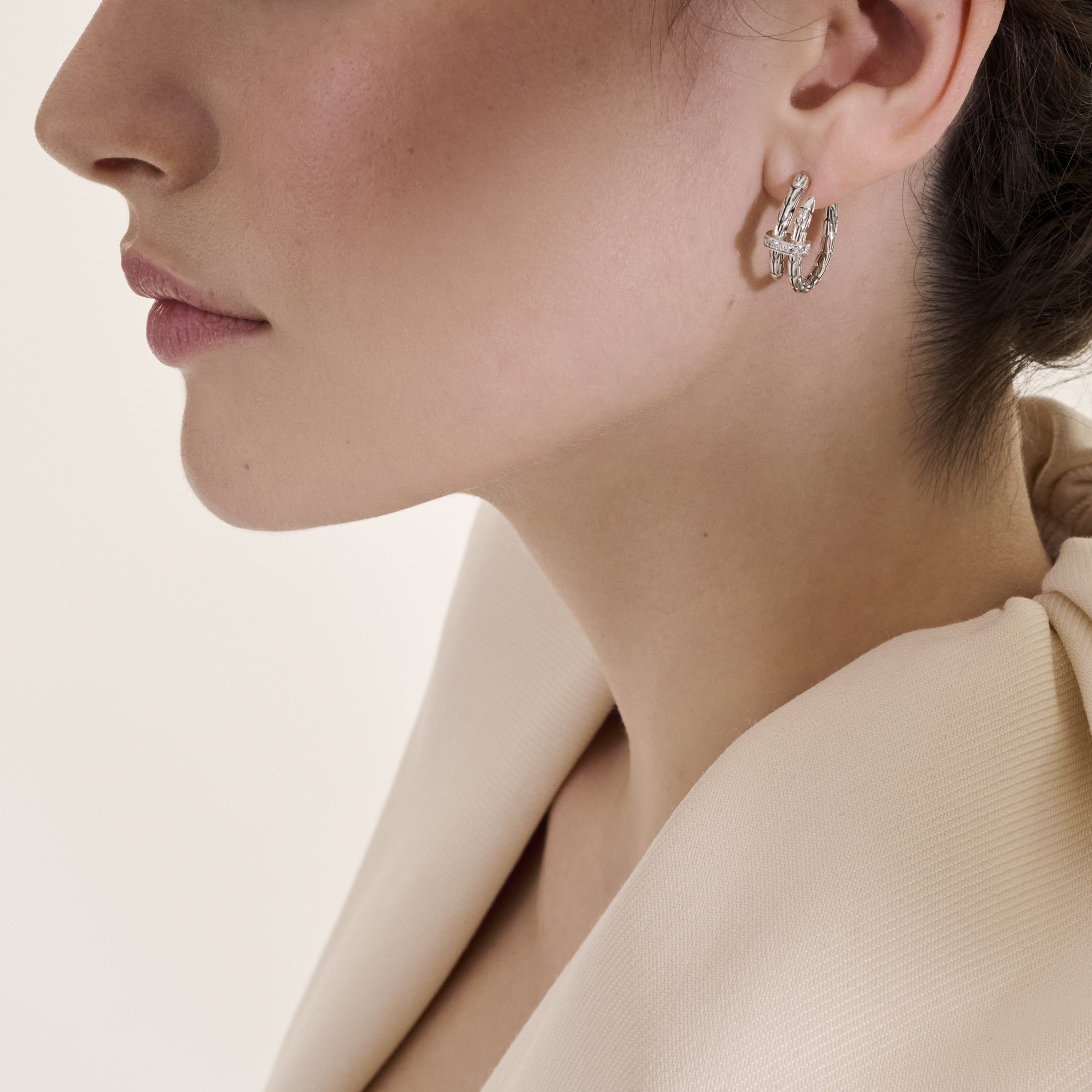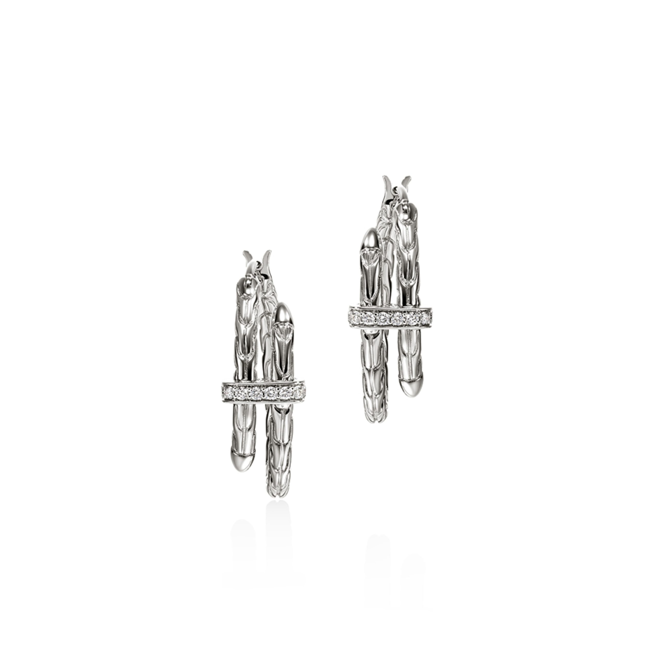 Spear Silver Diamond Pave (0.12ct) Hoop Earrings (22.5mm)