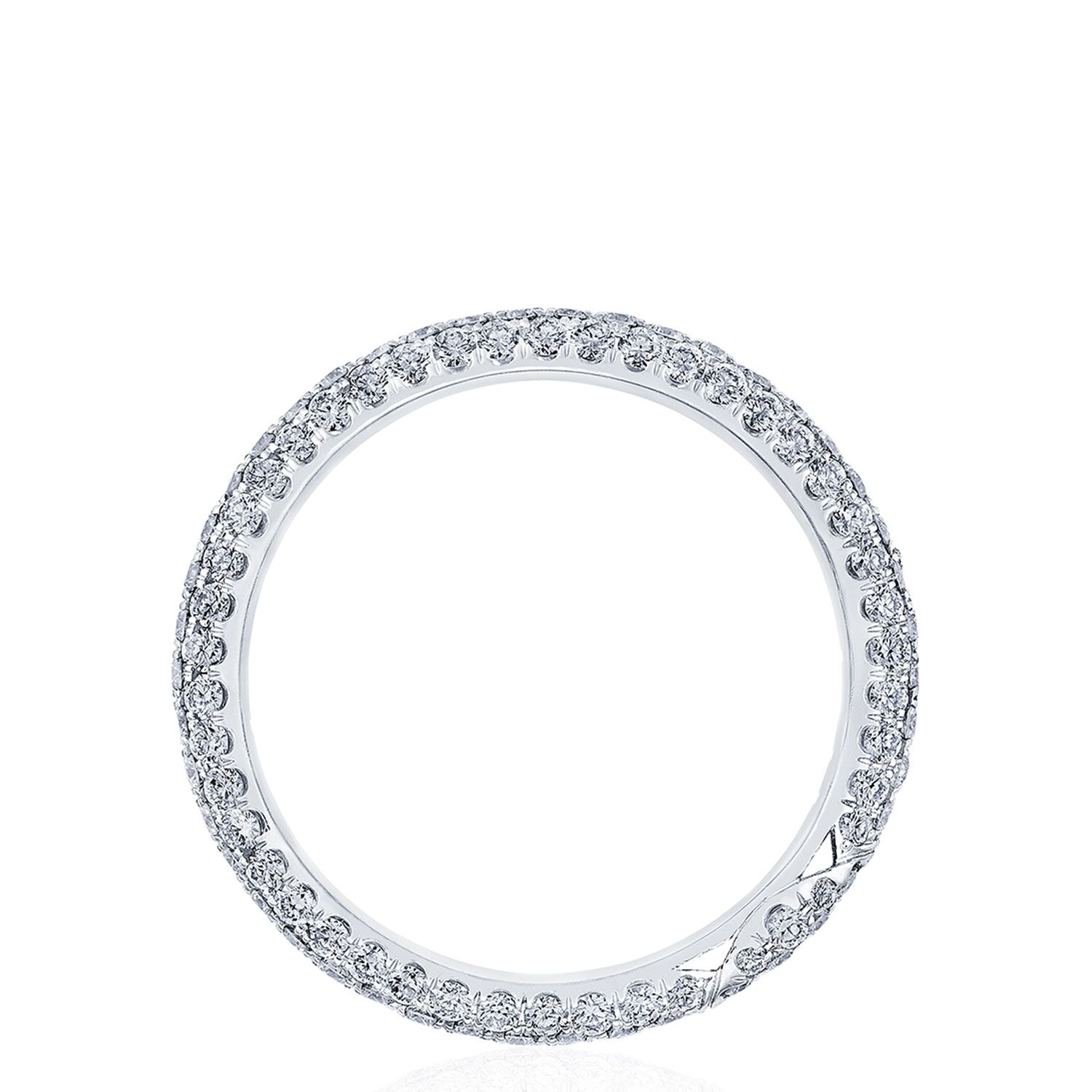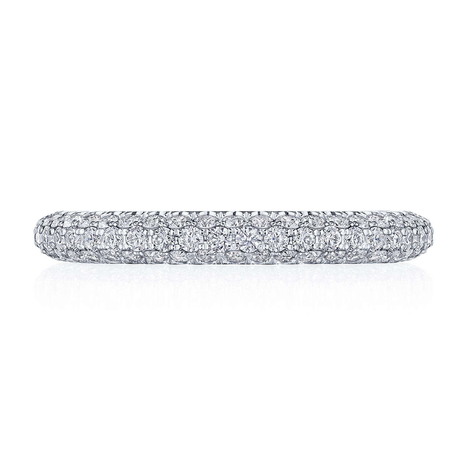Designed by our Founder, Haig Tacorian, this eternity wedding band features a triple row of pavé-set diamonds, all around the band. Discover the diamond-intense Tacori crescent signature.